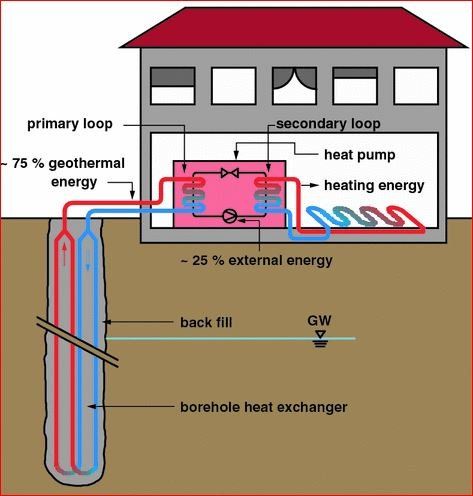 If existing property with plenty of land, we would recomend a slinky system which sits beneath the ground vertically in a trench or horizontally in the soil.